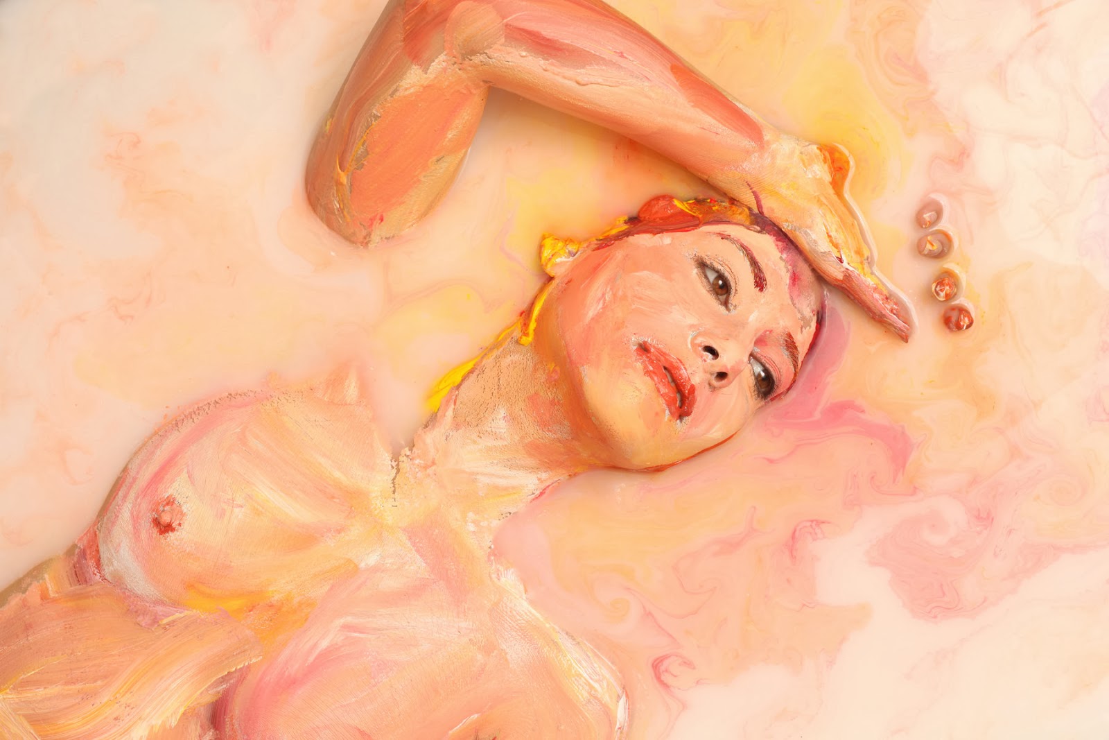 Recently, Alexa completed a collaboration with performance artist Sheila Vand as Alexa // Sheila, submerging her signature painted subject in a pool of milk. Her portrait subjects include such individuals of note as Grammy winning musician Gotye. Alexa is 26 years old. She lives and works in Los Angeles, California.
